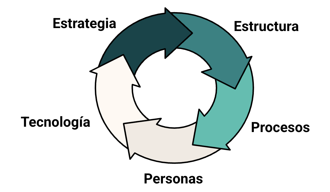 El foco estuvo puesto en trabajar de manera integrada sobre cinco dimensiones: estrategia, personas, procesos, estructura y tecnología, evitando transformaciones parciales o meramente metodológicas